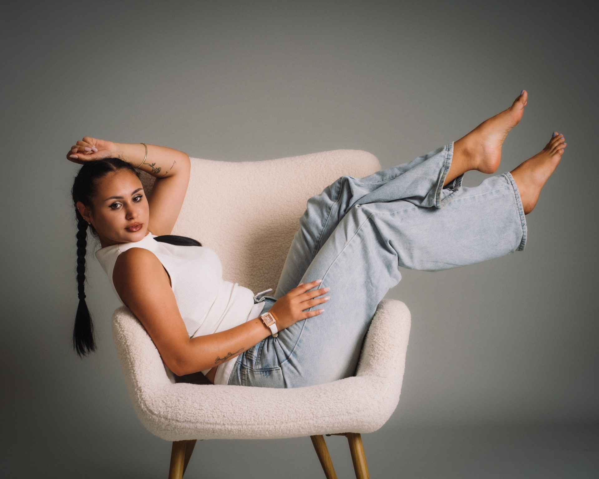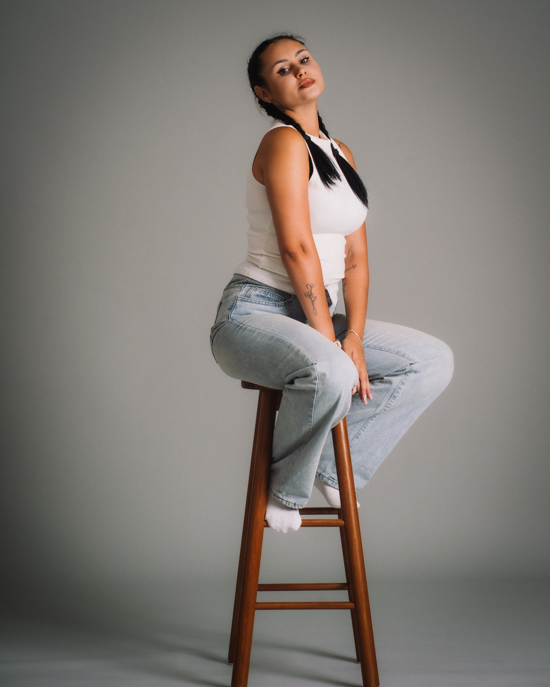 Ne-am cunoscut în prag de sărbători, la o ședință foto de Crăciun. Era prima lor experiență într-un studio foto, dar energia lor a fost de la început vizibilă. De atunci, ne-am reîntâlnit constant. De fiecare dată am explorat un alt unghi al relației lor, al emoției, al expresivității.